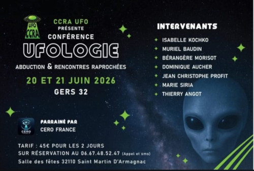 Avec la participation de Christophe Laurent qui nous présentera son prochain évènement du mois de Juin dans le Gers sur le phénomène des abductions; avec le partenariat du Cero France.